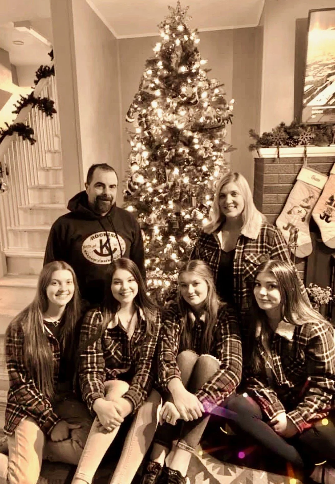 Shane and Tamara Charles with their four daughters at Christmas. Some of the daughters can be seen occasionally working at Carmel’s.